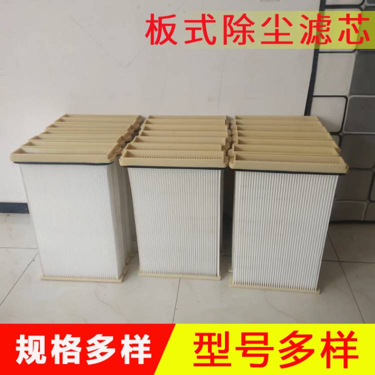 板式除尘滤筒的特点:1.独特的外形及内部强大的支撑滤筒外部形状特点是具有象手风琴那样的波浪形,若把它们展开成一个平面,相当于扩大了4倍的表面积.强大的内支撑使滤筒刚性结构强.2