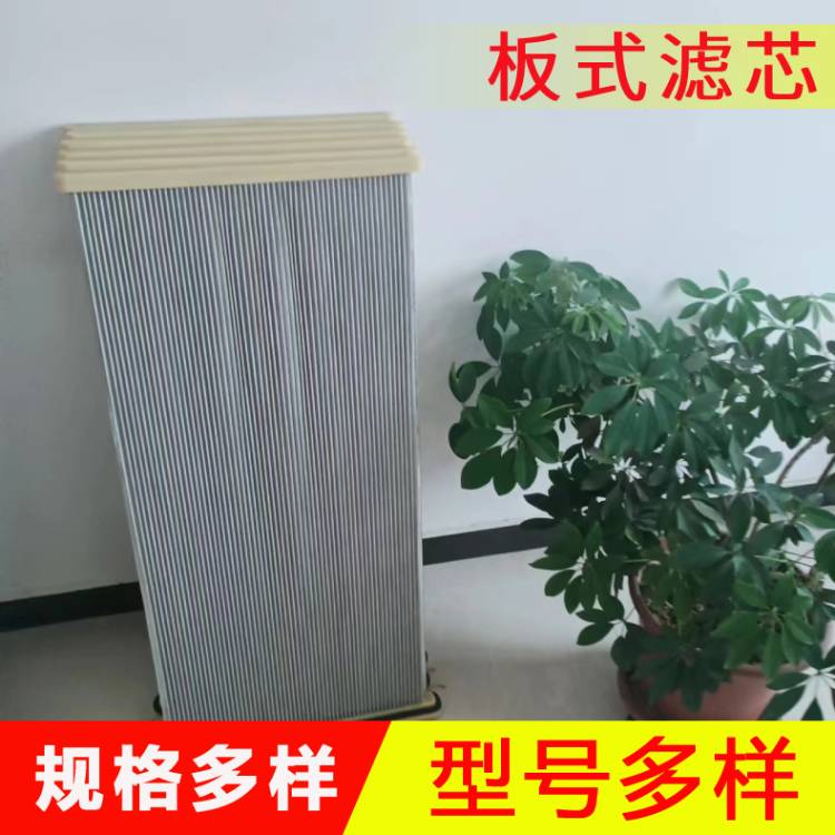 板式除尘滤筒的特点:1.独特的外形及内部强大的支撑滤筒外部形状特点是具有象手风琴那样的波浪形,若把它们展开成一个平面,相当于扩大了4倍的表面积.强大的内支撑使滤筒刚性结构强.2