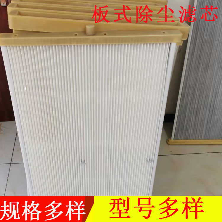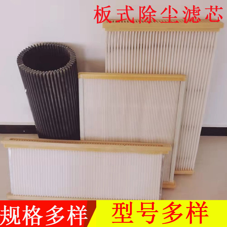 板式除尘滤筒的特点:1.独特的外形及内部强大的支撑滤筒外部形状特点是具有象手风琴那样的波浪形,若把它们展开成一个平面,相当于扩大了4倍的表面积.强大的内支撑使滤筒刚性结构强.2