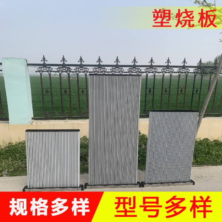 塑烧板的特性1、滤芯式塑烧板是:根据粉末状压制烧结法纪成的,其生产工艺流程繁杂,对原材料规定高。实际上如今除尘器具中十分关键的元器件,根据与众不同的挤压成型机器设备,将纤维材料