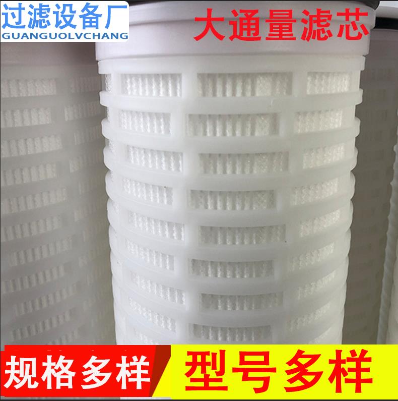 大流量滤芯又称大流量水滤芯、大流量滤元、大通量滤芯、大流量折叠滤芯等,通常采用PP材质的内外骨架,滤层由保护网、无纺布、过滤膜等多种材质组成,可适应绝大多数水处理的工况.
