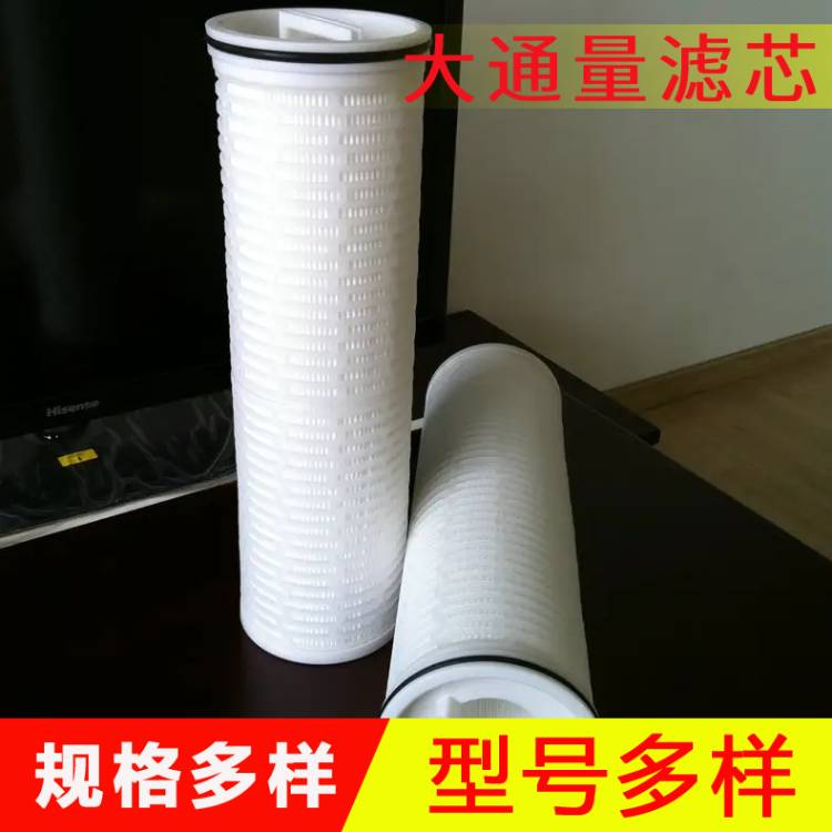 大流量滤芯又称大流量水滤芯、大流量滤元、大通量滤芯、大流量折叠滤芯等,通常采用PP材质的内外骨架,滤层由保护网、无纺布、过滤膜等多种材质组成,可适应绝大多数水处理的工况.