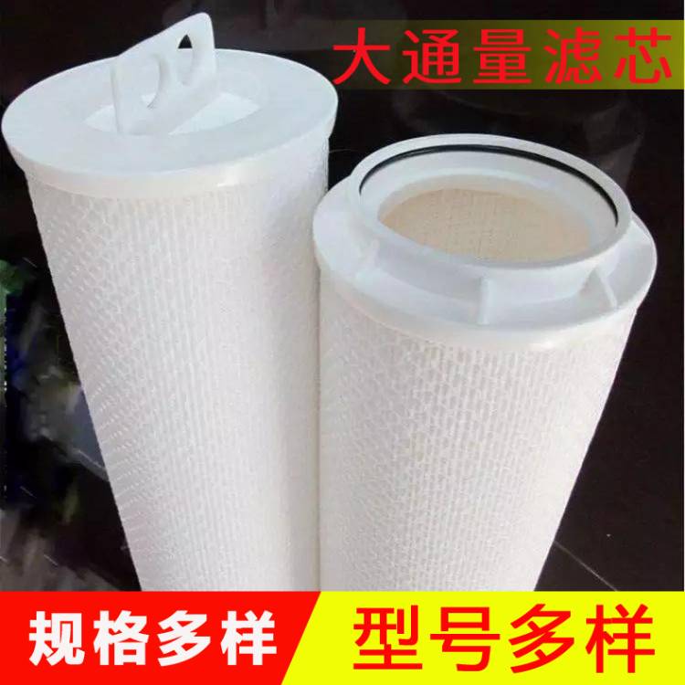 大流量滤芯又称大流量水滤芯、大流量滤元、大通量滤芯、大流量折叠滤芯等,通常采用PP材质的内外骨架,滤层由保护网、无纺布、过滤膜等多种材质组成,可适应绝大多数水处理的工况.