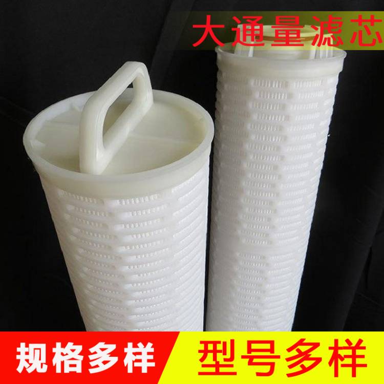 大流量滤芯又称大流量水滤芯、大流量滤元、大通量滤芯、大流量折叠滤芯等,通常采用PP材质的内外骨架,滤层由保护网、无纺布、过滤膜等多种材质组成,可适应绝大多数水处理的工况。.