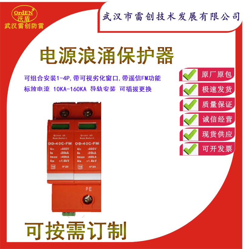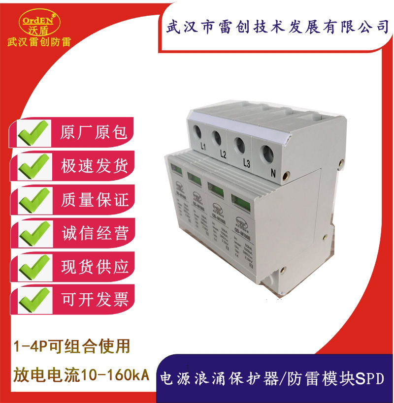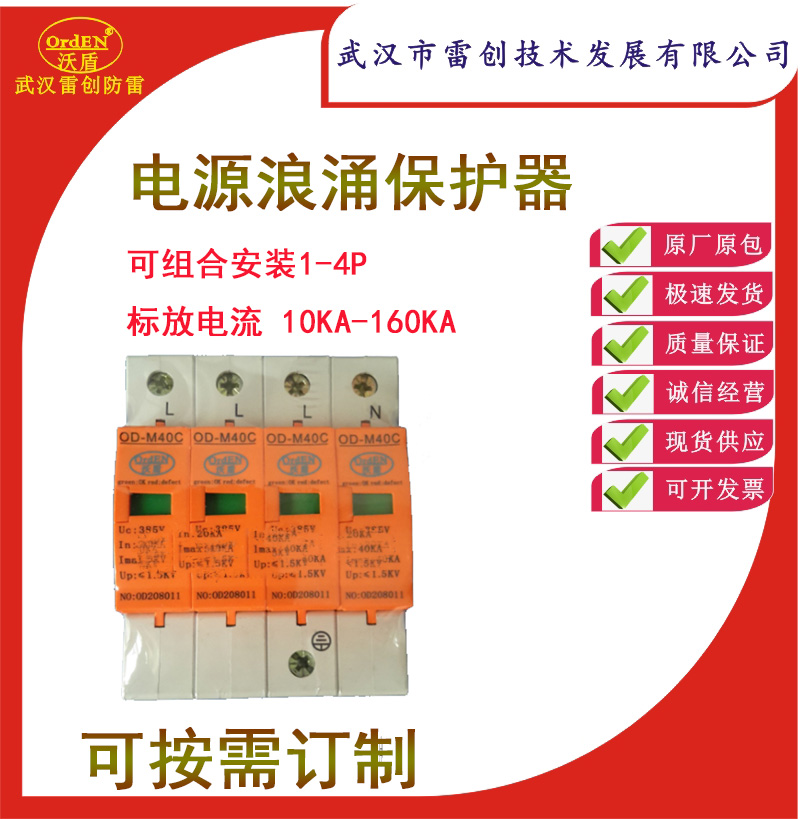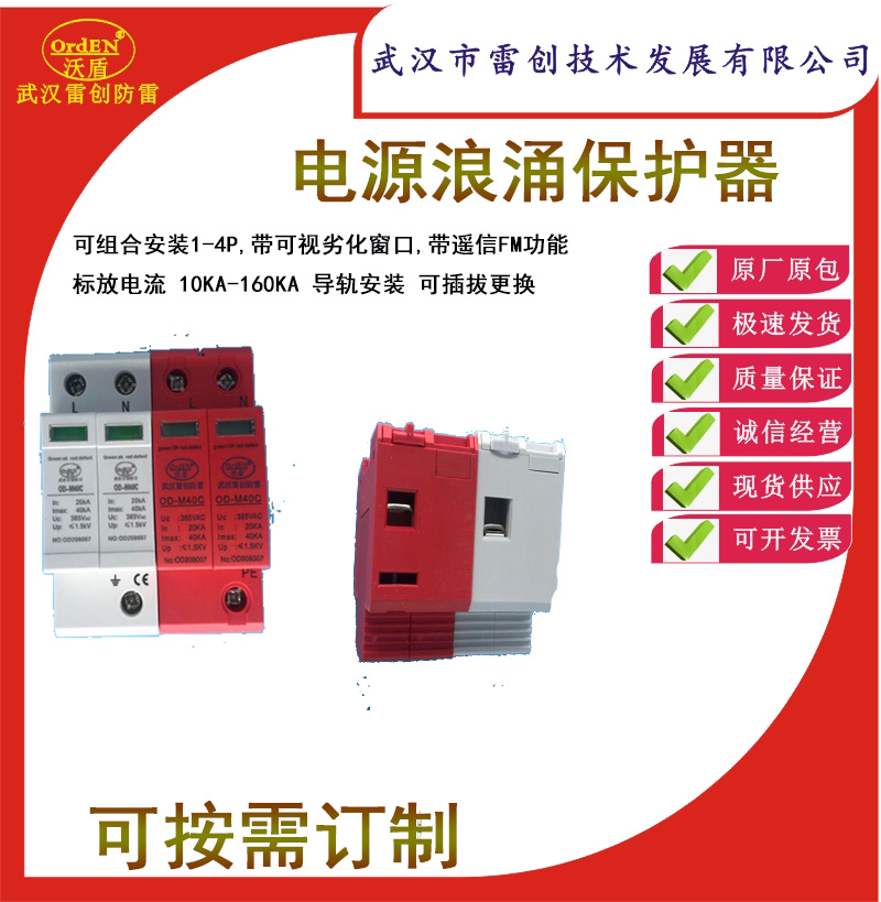 交流浪涌保护器380V交流电涌保护器OD-M80B/4三相浪涌防雷保护器价格 产品型号(单模块参数) OD-M80B 工作电压Uc(V) 220V
