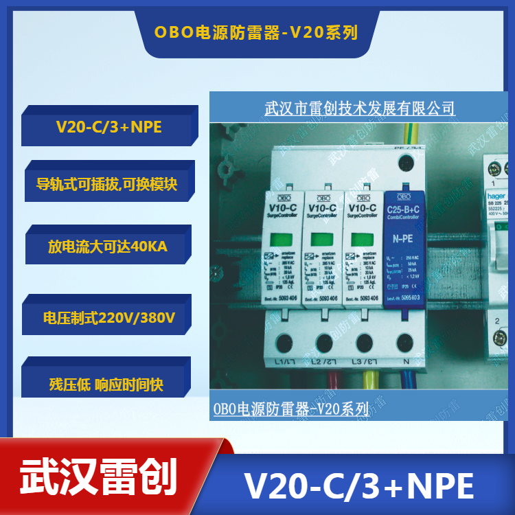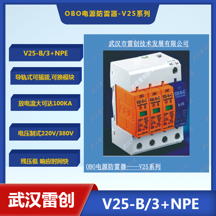 OBO防雷器V25-B+C/3+NPE复合型一级电涌保护器100KA可议价 V25-B+C/3+NPE(B+C等级)可用于TN-C-S,TN-S,TT和IT系统中特别的浪
