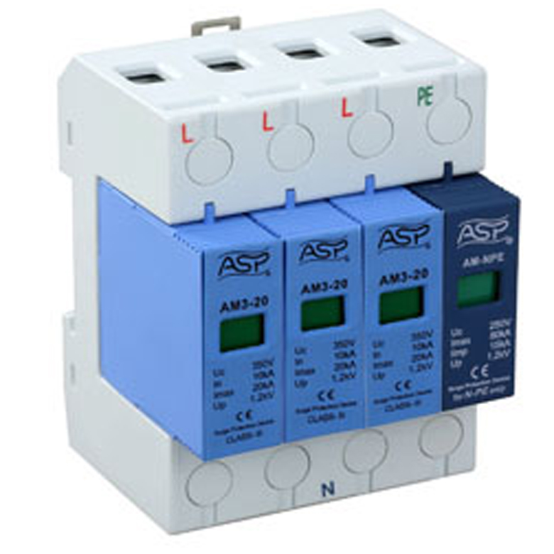 220V单相防雷器AM3-20/1+NPE避雷器220V机房电源防雷模块AM3-20/1+NPE模块化电源电涌保护器依据IEC和GB标准设计,AM系列低压配电系统电涌保护器具备
