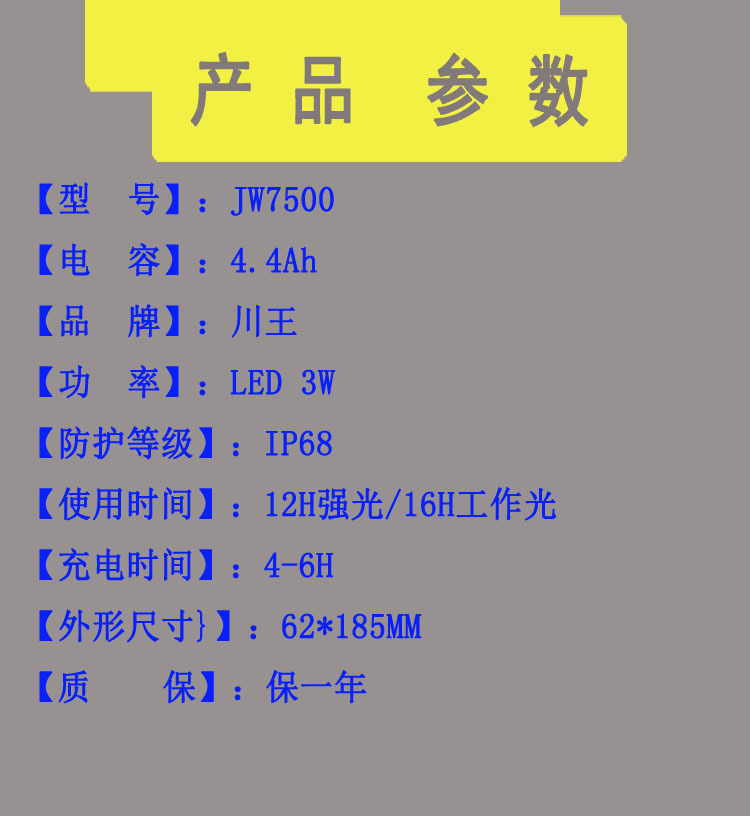 JW7510/JW7500固态免维护强光电筒 适用于电力、铁路、冶金、船舶、港口、部队等行业作移动工作照明。