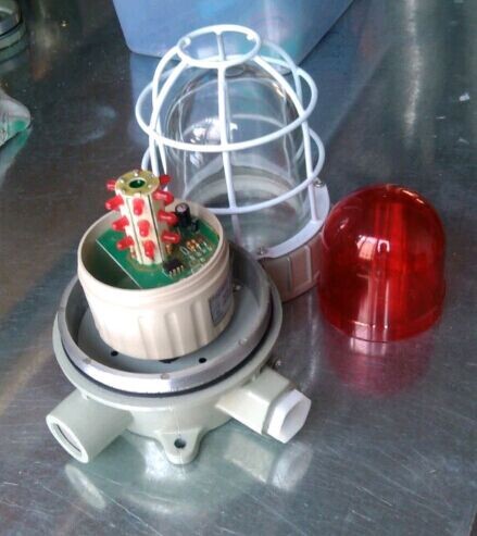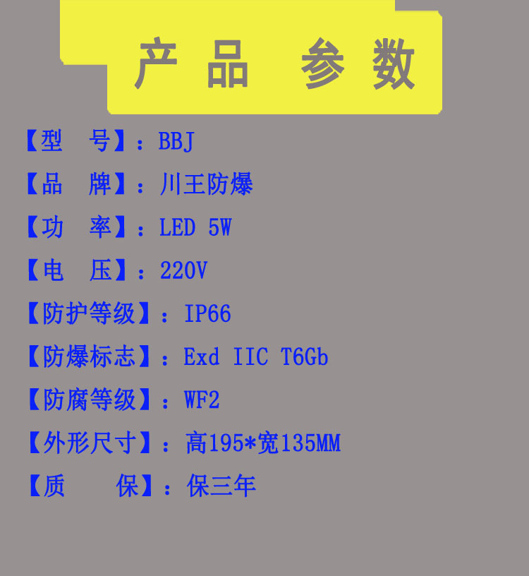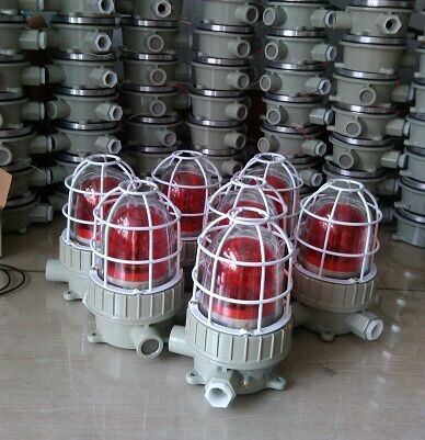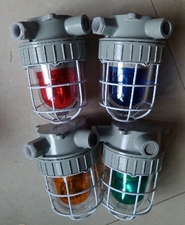 1.外壳采用ZL102铝合金压铸成型,表面高压静电喷塑;2.钢化玻璃外罩,不锈钢外露紧固件,防护网罩采用镀锌后表面喷塑,双重防腐;3.钢化玻璃外罩具有较强的抗冲击能力,并有红、黄、蓝等多种颜色可选;