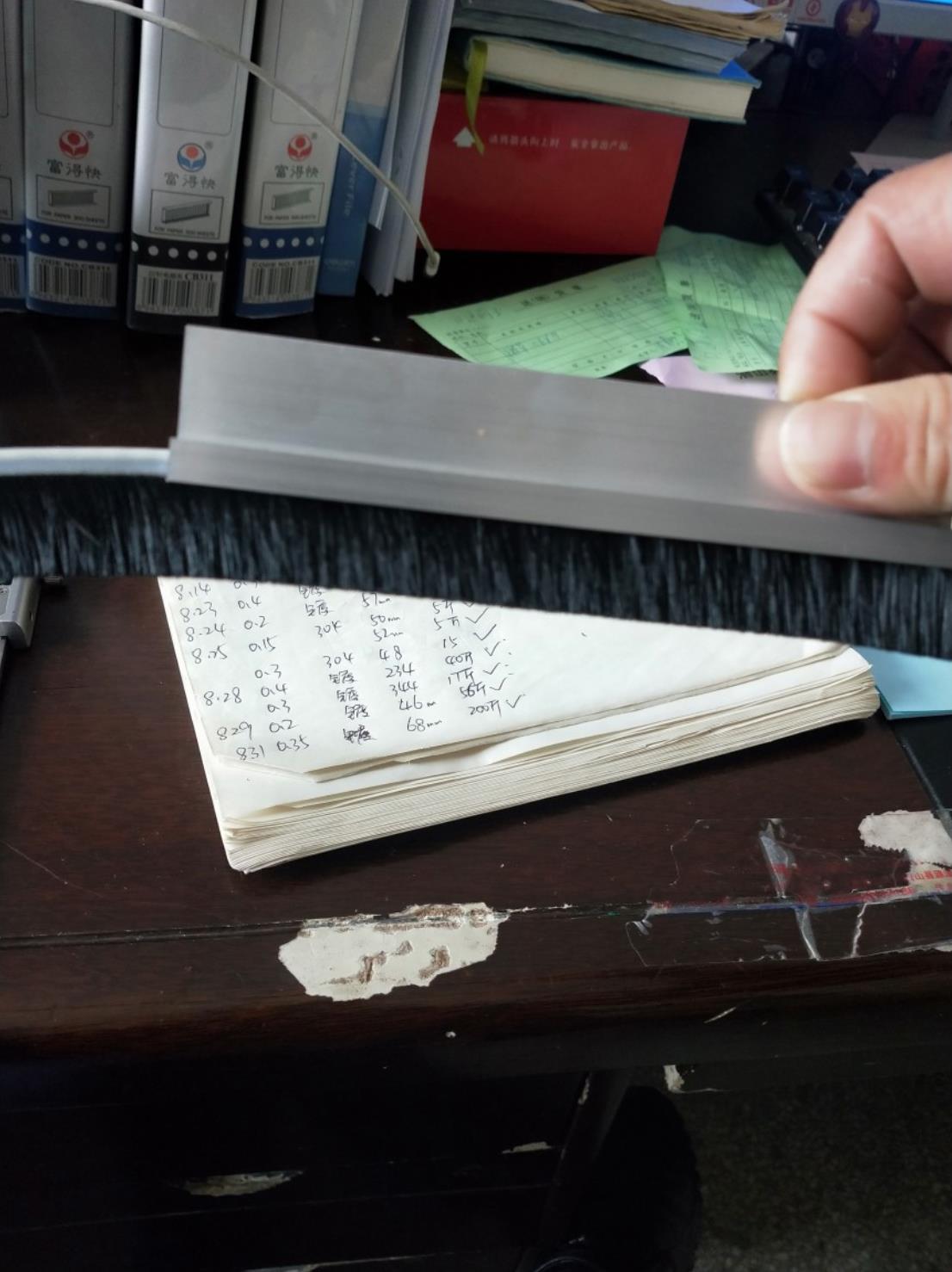 毛刷长度: 20mm(最短)、1000mm、1200mm、1500mm、2000mm、5000mm、10000mm(最长)等 钢带底厚:最小2.5mm(最薄),3mm,3.5mm,4mm,4.5mm,5mm---------12mm(最厚)