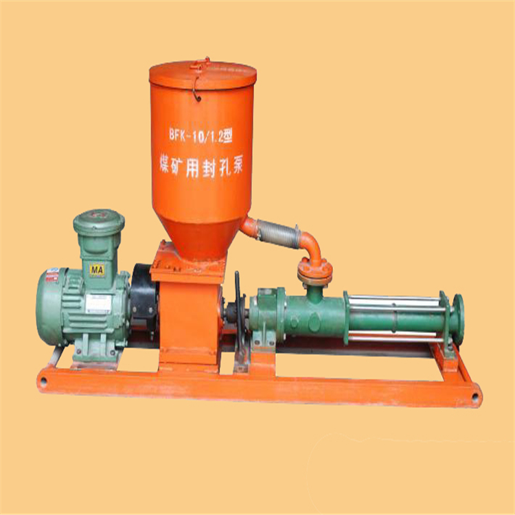 BFK型由防爆电动机、变速箱、搅拌器和单螺杆泵等组成。YFK型封孔泵主要由液压马达、变速箱、搅拌器和单螺杆泵等组成。QFK型封孔泵主要由气动马达、变速箱、搅拌器和单螺杆泵等组成
