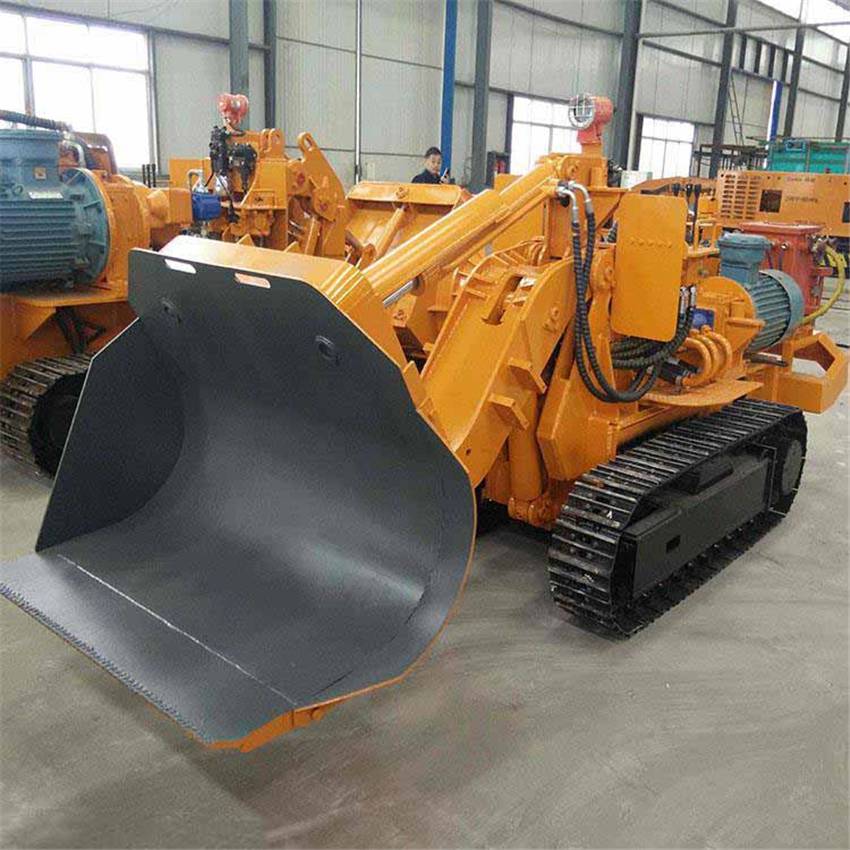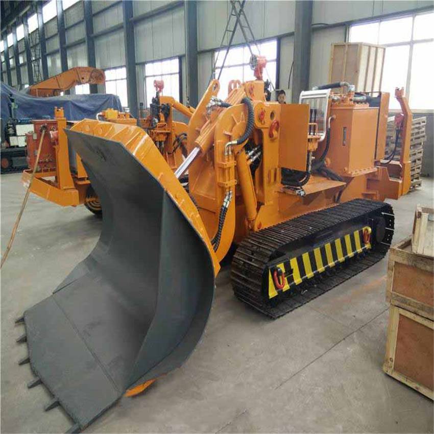 侧卸装岩机因此电机为直接驱动、履带行走、液压油缸操纵铲斗的正装侧卸式装岩装备。侧卸装岩机主要用于水平岩、半煤岩巷道、施工,也可用于煤及其它物料的装载。该机安全性能好、插入力大、灵活性优良、全断面作业。我国首创的电机驱动侧卸装载机与国外的全液压侧卸装岩机相比,具有过负荷能力强、兼职可靠、布局简单,和维修简便等特点,更适合在恶劣的矿井工况条件下作业。该机可“一机多用”,除实现装载作业外,还能充任支护时的兼职平台,或用于兼职面短距离运输、卧底、清帮等辅助工序作业,并可与钻车等配套,组成机械化作业线,显著进步巷道施工的机械化水平。应用侧卸装岩机可获得显著的概括经济效益。