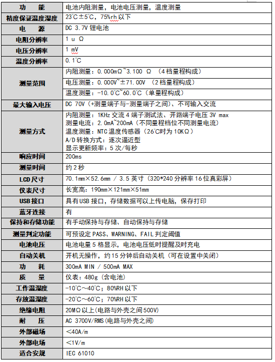 ● 测量精度 内阻:±1.0%rdg ±6dgt