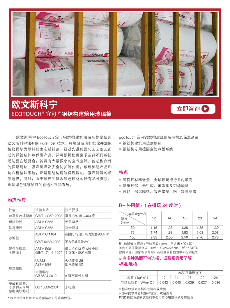 钢结构建筑用玻璃棉 |