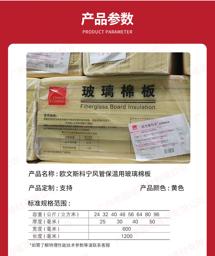 欧文斯科宁风管保温用黄色玻璃棉板 |