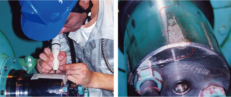 工业轴焊堆焊复实例。 大型工件不用拆卸、可直接对所需部位进行处理。