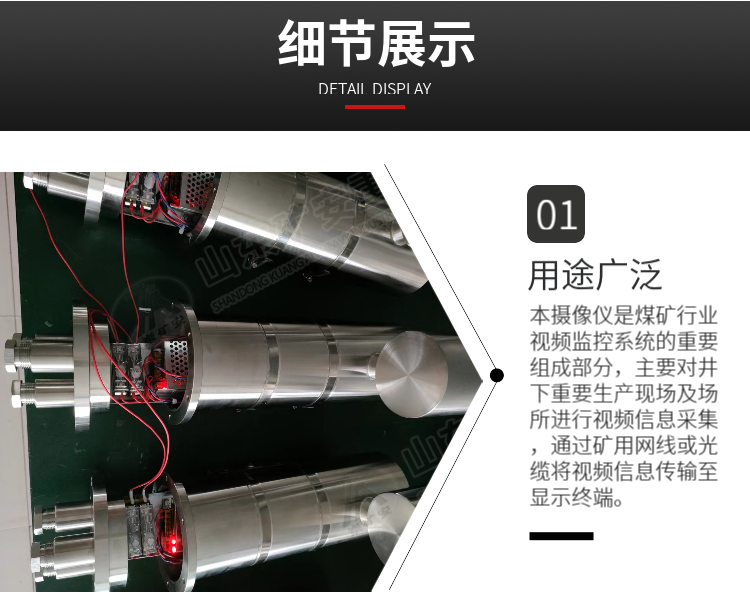 KBA127矿用隔爆型摄像仪由防爆外壳和机芯组成,机芯固定在防爆外壳内机芯由电源板、光电板、摄像机三部分组成。