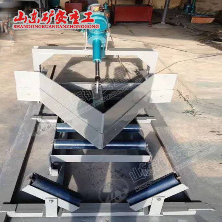 DYTN型单双侧电液动犁式卸料器适用于带宽500-1800皮带输送机的均匀卸料.1800卸料器是我公司te殊设计的产品,填补了国内空白。电液动犁式卸料器以电液动推杆为动力源,带动框架前进,完成犁头下落,并支承平托辊,犁刀下缘与胶带贴合,完成卸料。完毕后,框架后退,犁头上抬,变形托辊恢复槽形,胶带则则恢复槽形,物料平稳通过.
