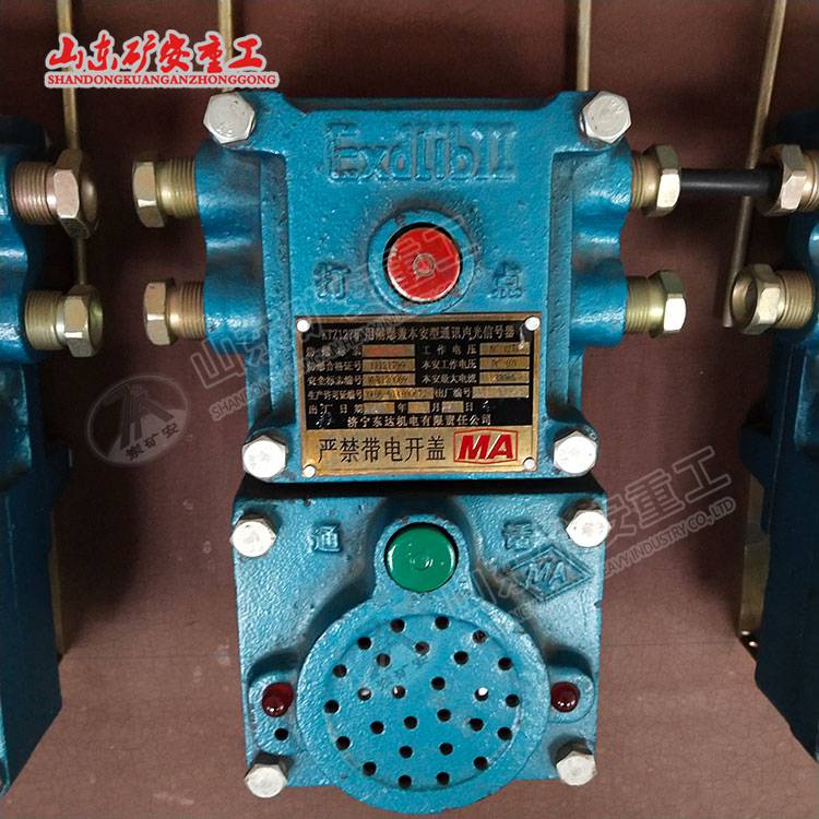 KXH127矿用隔爆兼本安型通讯声光信号器(以下简称:信号器),主要用于煤矿井下含有煤尘及性气体的工作场所,适用于煤矿斜巷提升,皮带运输等作信号联络使用,也可作为绞车房与井口的直通电话使用。通过电源连线实现载波对讲通讯。由矿用防潮扬声器和高亮发光二极管实现声光信号。