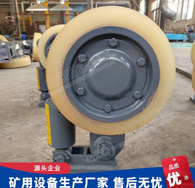 滚轮罐耳用于矿山提升容器的导向缓冲,本产品采用先进的密封技术,适应淋水、煤尘等恶劣环境。轮头安装采用三锁紧结构,彻底避免掉轮头事故的发生。滚轮采用-环氧共聚醚型聚氨酯浇注,