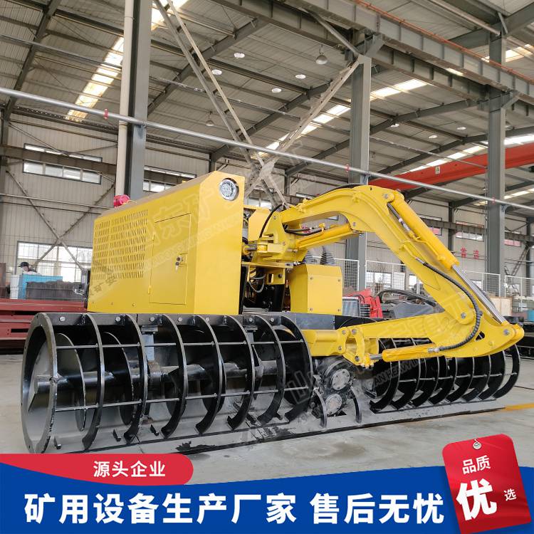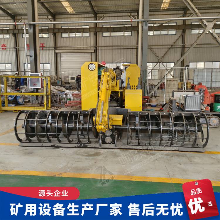 MQCY型煤矿用清仓机(以下简称清仓机)主要由螺旋输料装置、挖掘装置、煤泥泵送装置、履带行走装置、电控系统、液压系统等组成的、应用于清挖煤矿井下水仓内沉积的煤泥,使水仓煤泥的挖装、泵送等工序,实现机械化、智能化连续作业的一种煤矿用多功能清仓设备。 本机通过自主设计研发,大大改善工人的劳动条件,减轻劳动强度,提高工作效率,缩短清仓工期,提高水仓利用率,具有巨大的经济效益和社会效益,同时符合智慧化矿山建设理念。