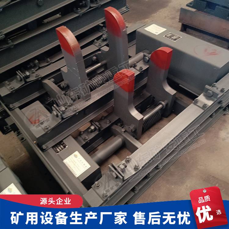 该产品是煤矿轨道运输中使用的安全保护装置,使用气体动力实现卧闸的关闭,依靠弹簧力自动开启,处于开启阻车状态。QWZC系列气动卧闸始终处于对一方向矿车开启阻车状态,阻挡此方向矿车,防止矿车自溜,当此方向矿车需要通过卧闸时,利用气动操作关闭卧闸放行矿车,当矿车通过后,卧闸能自动开启。对反方向运行矿车不用操作就可通过气动卧闸,通过后自动开启。