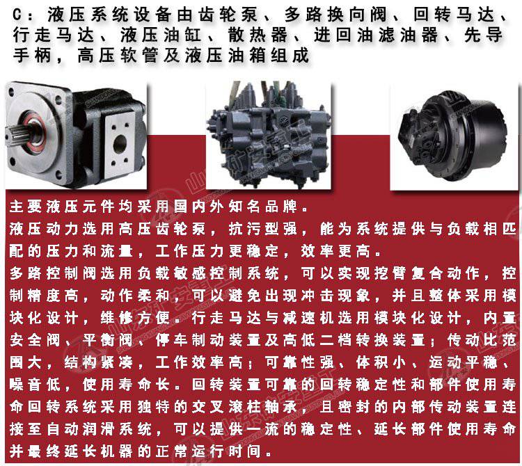 本机靠履带推进扒取岩石送入自身的皮带输送机,输送机从尾部将岩石卸入自卸汽车或梭式矿车。同时可利用反铲挖掘臂扒取远处的岩石,也可以用铲斗来清理工作面。底盘设计参考小松挖掘机结构形式,采用液压马达驱动履带行走机构,结构紧凑﹑机动灵活,可在潮湿有积水的巷道里工作。