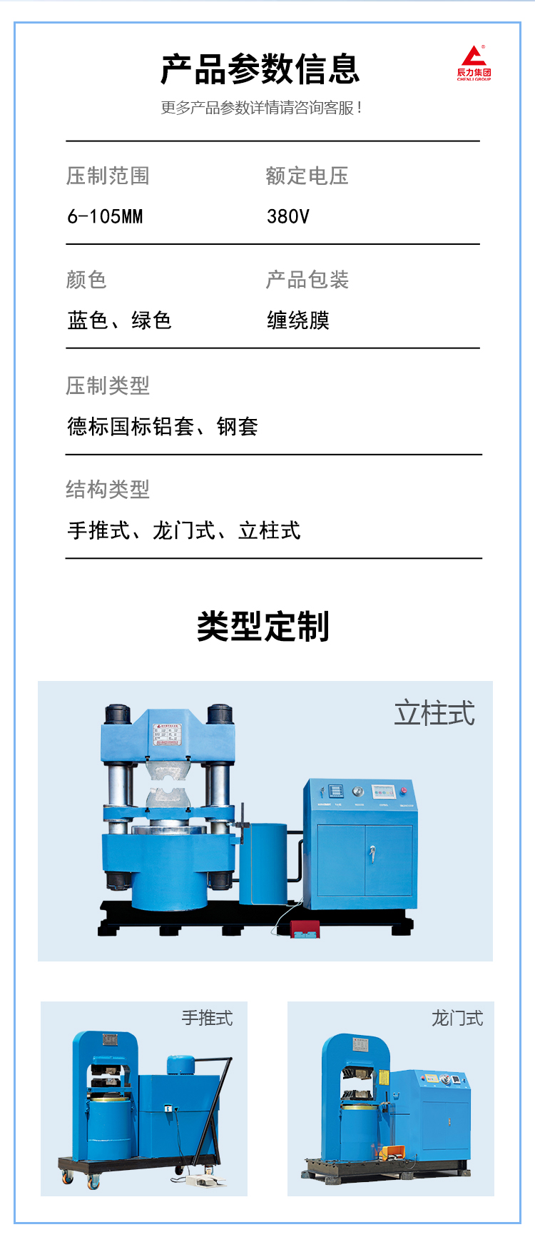 辰力集团生产150吨-3000吨等不同规格的压套机,想了解的朋友们可以咨询客服人员。