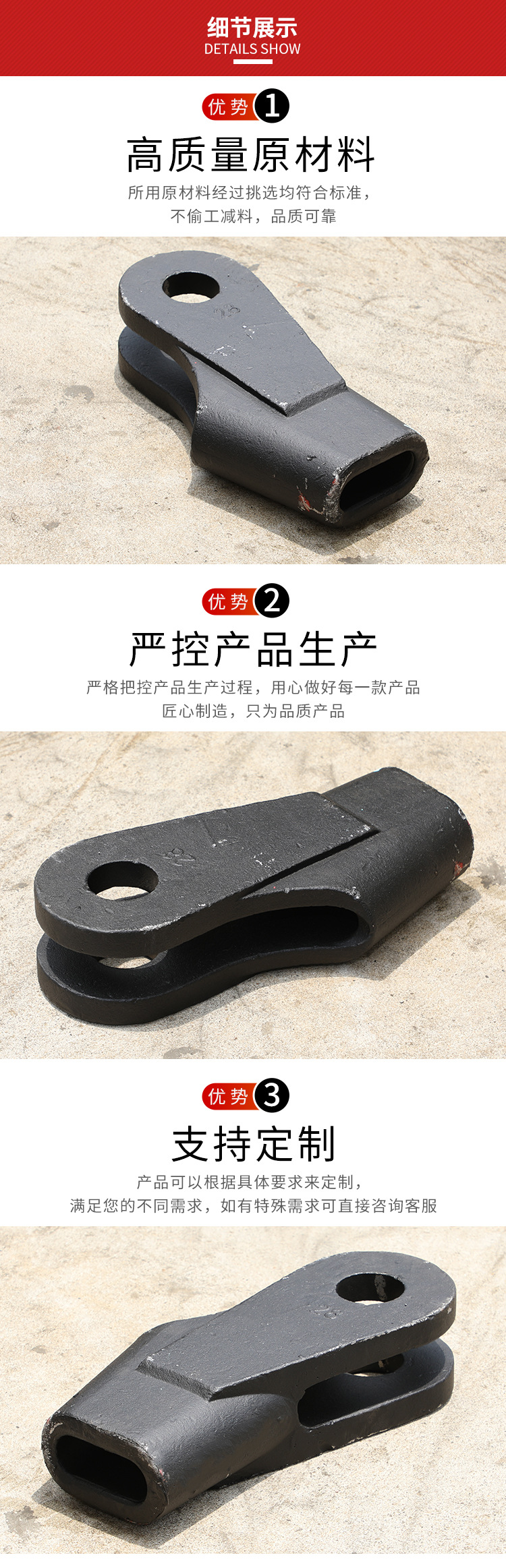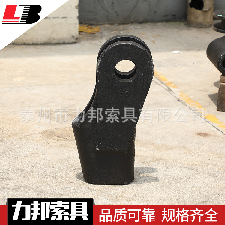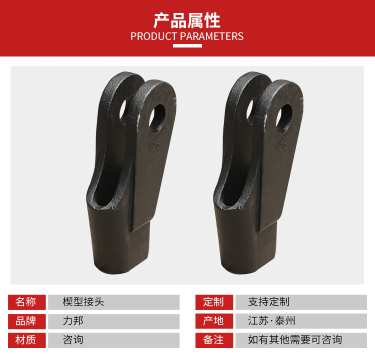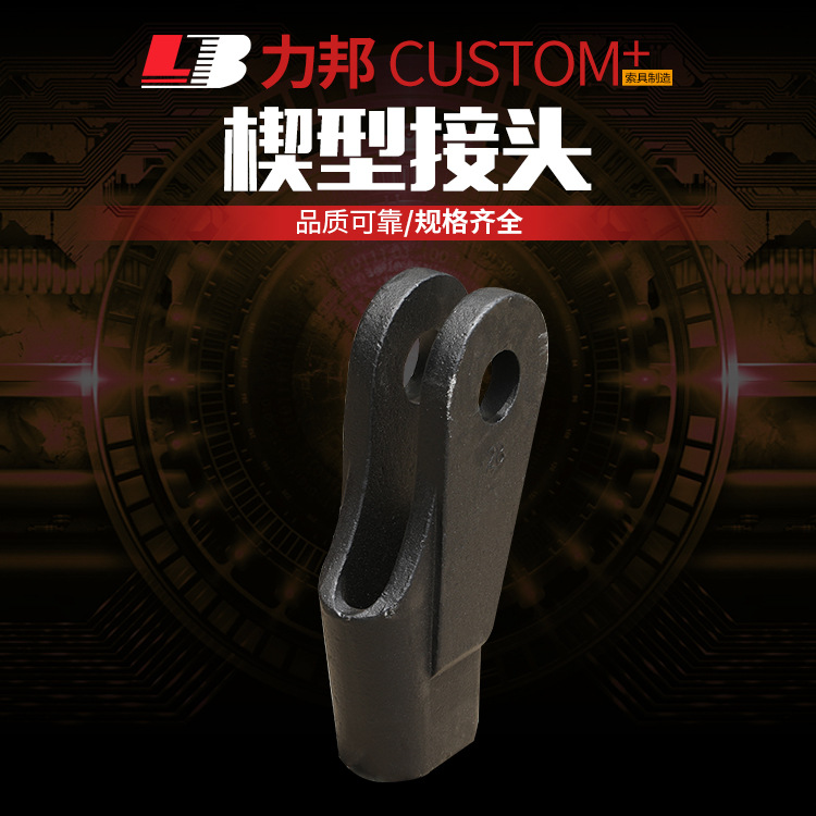 楔形接头一般为铸造或焊接而成,主要由:楔套、楔芯、横销三部分组成。表面应光滑平整,尖棱和冒口因除去,并不得有降低强度和明显有损外观的缺陷(如气孔、裂纹、疏松、夹渣、夹砂、铸疤等),楔形接头应进行防锈处理。