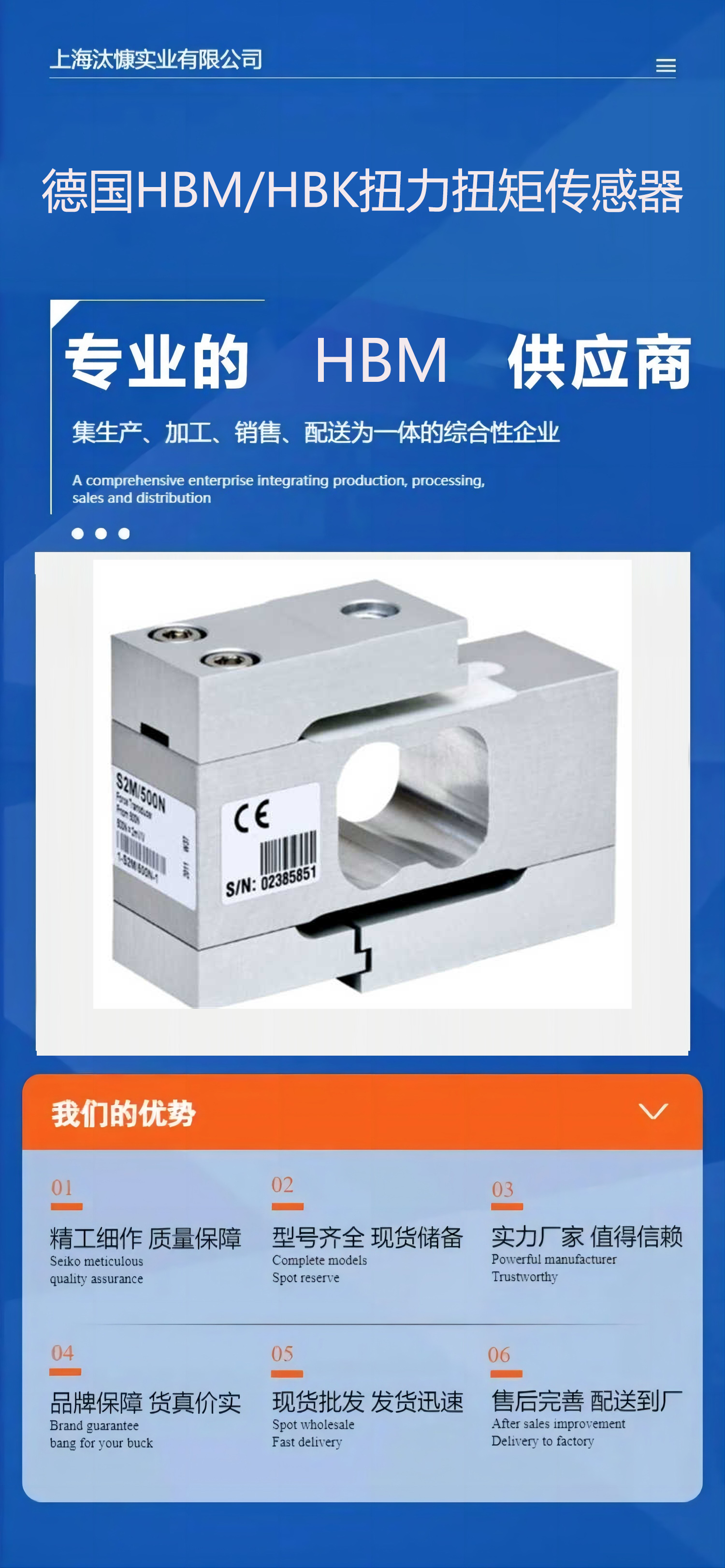 工业级扭力传感器C2/100KN和U3/20KN全系在售 HBM优势供应