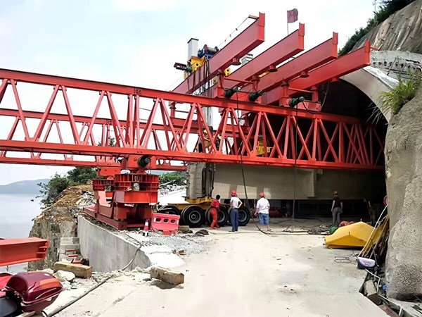 贵州毕节架桥机销售厂家关于导梁式架桥机穿越隧道的核心难点在于设备尺寸与隧道净空的匹配,以及隧道内空间受限导致的支腿支撑、荷载平衡等问题。结合工程实践,其穿越方案可分为结构适应性改造、隧道内工况优化、分阶段实施策略三大类,具体技术路径如下: