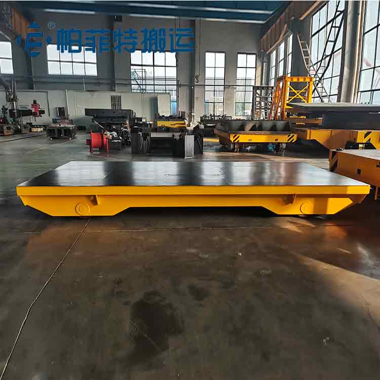 将交流 380V 的电源通过变压器降压至交流 36V 三相,分别接至三根道轨上(增加一条导电轨),轨道平车上的车轮的导电滑块将三根道轨上的交流 36V 电源引入车载电器箱,经过升压变压器将三相交流 36V 升压至三相交流 380V,再通过交流控制系统控制交流冶金电机,使平车启动、停止、前进、后退等。它能在 S 型轨道、弧形轨道及高温场合使用,平车上可以加装液压升降系统、起重系统,具有安全性与机动灵活性,对轨道铺设要求较高(需要绝缘处理轨道),适合载重量较大、中长距离运输场合使用。