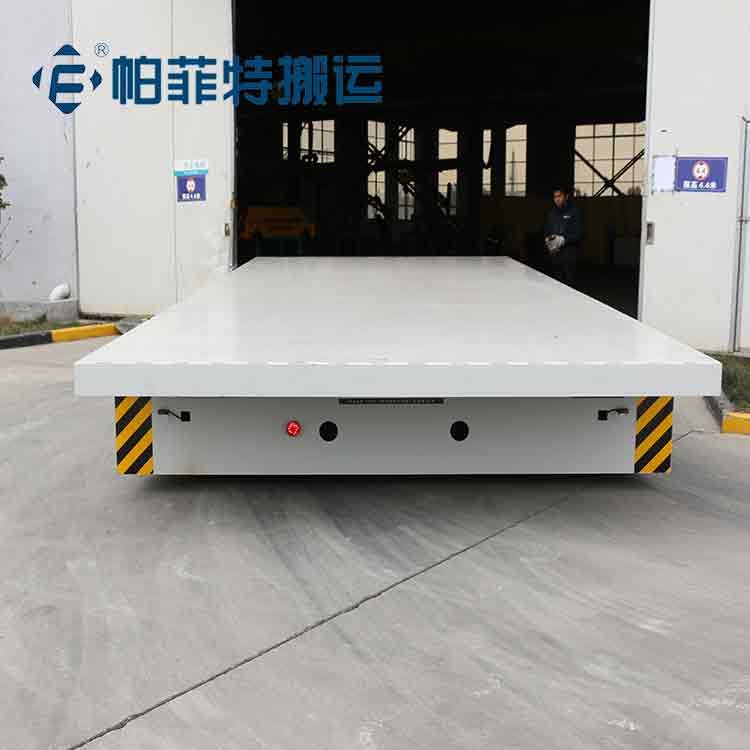 BWP系列无轨电动平车由电源、传动机构、钢结构承重架、转向系统、行走机构、控制模块以及故障诊断模块组成。通常,我们选择蓄电池、 电缆、发电机作为该系列车的电源,电源经过电器控制模块系统,给牵引电机提供电力,实现无轨转运车的启动、停止、前进、后退和转向以及其它功能。该系列车可实现360原地旋转。车上均配有安全警示和安全检测装置,遇到行人或障碍物立即报警并自动停止,配备全自动智能充电机。无轨转运车上还可以加装定位装置、夹紧装置、升降平台等其它辅助装置以满足不同场合的使用需求。该系列车可以装配PLC控制系统,实现完全自动化控制。