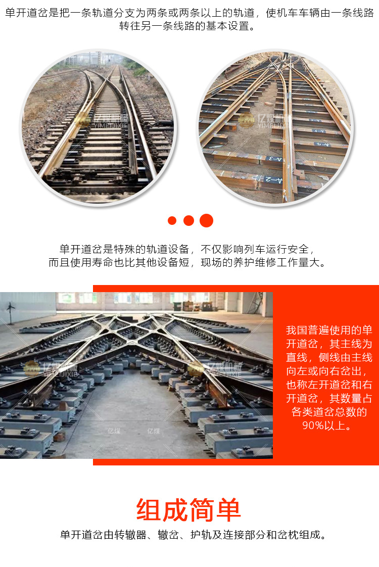 单开道岔介绍 单开道岔厂家 亿煤供应单开道岔
