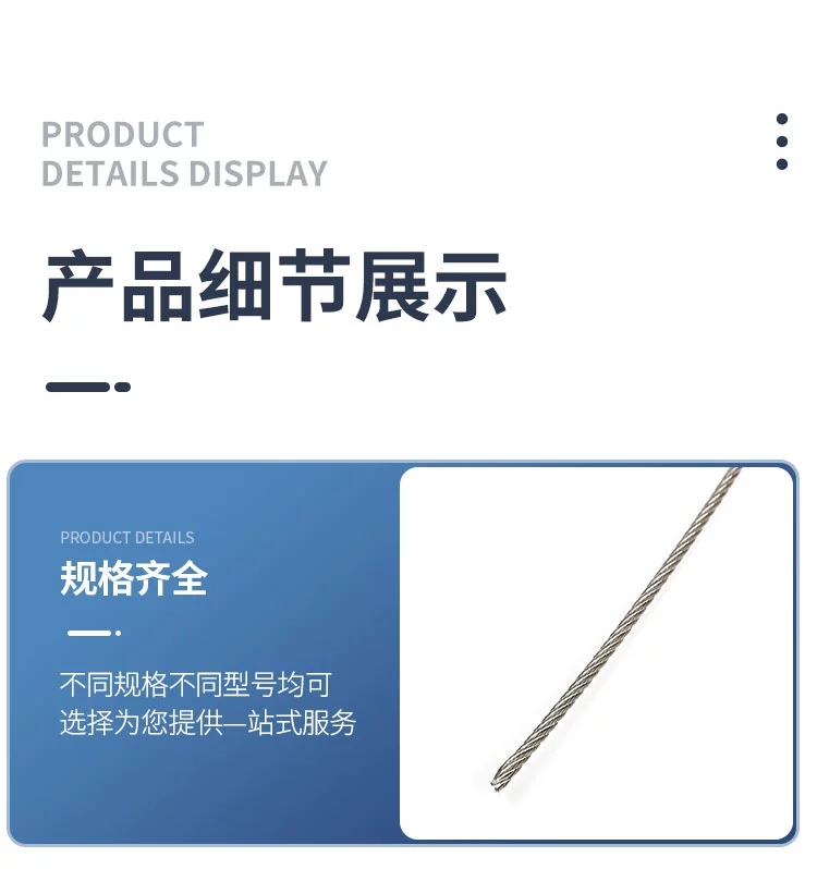 【产品特性】 不锈钢丝绳具有柔韧性挠性好、弹性好、自重轻、抗拉强度高、经久耐用的优点。