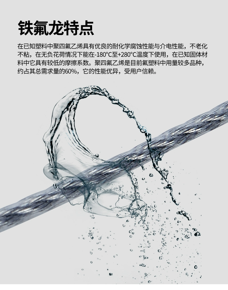 铁氟龙钢丝绳适用于高温、腐蚀等恶劣环境下的使用,例如化工、航空、航天等领域;而纯钢丝则适用于要求高强度、耐磨性等场合,例如起重、牵引等领域。