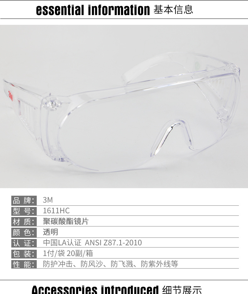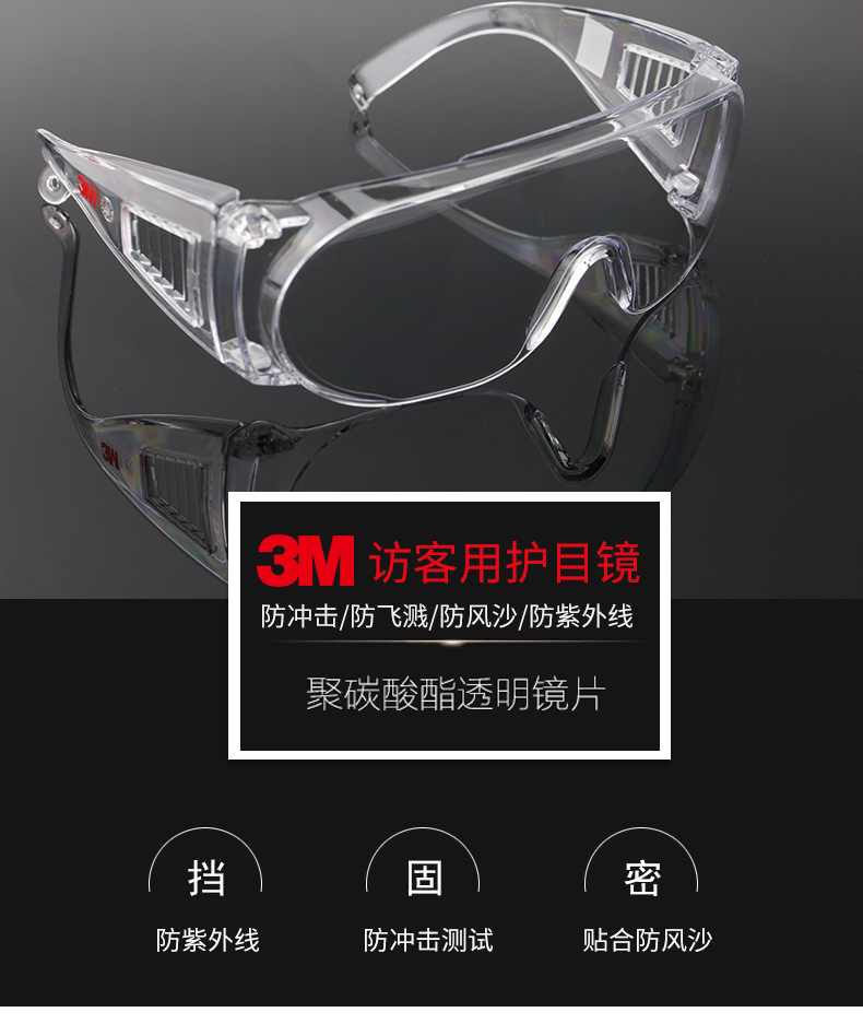 3M 1611HC 访客用眼镜 防冲击防刮擦防风沙防尘骑行防护眼镜