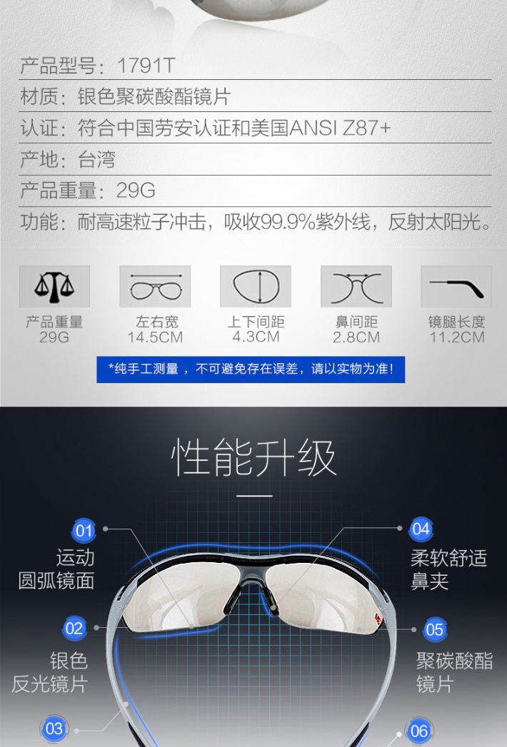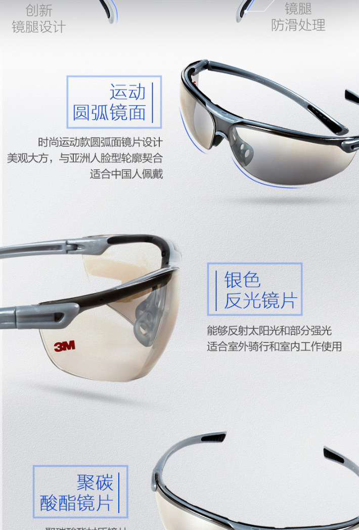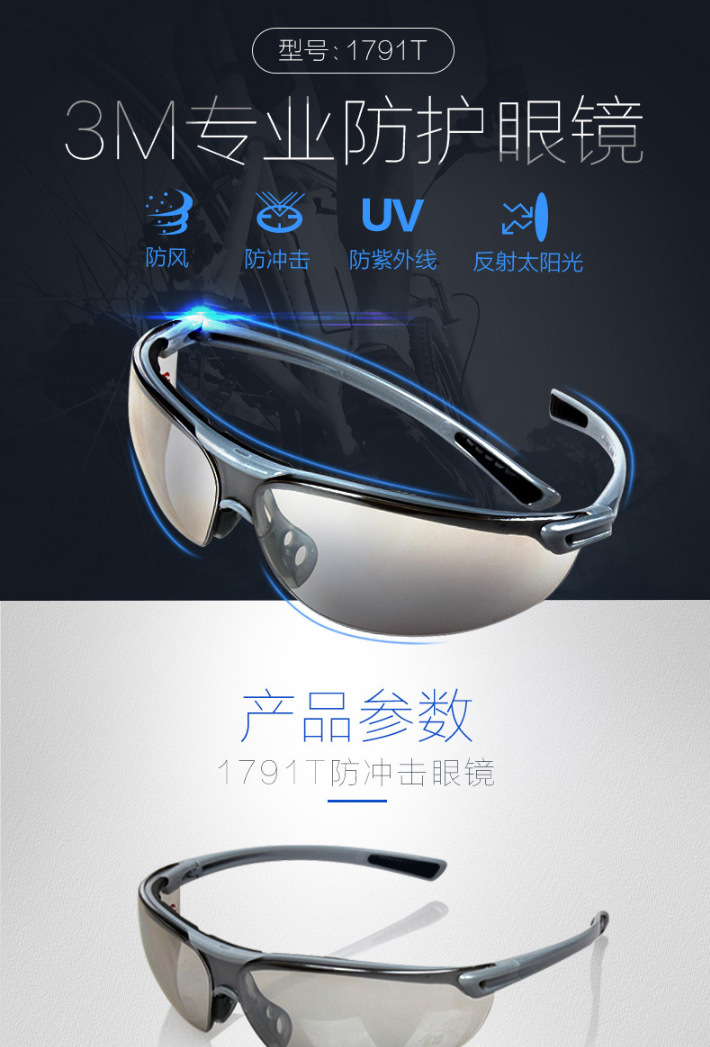 3M 1791T 防护眼镜 防紫外线防冲击防刮擦防风沙骑行防护眼镜
