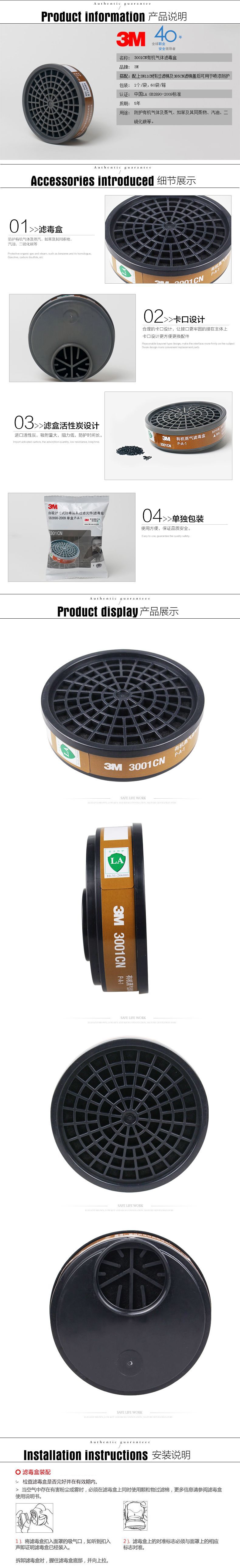 3M 3001CN 防有机蒸汽防有机异味滤毒盒 适用3000系列防毒面具