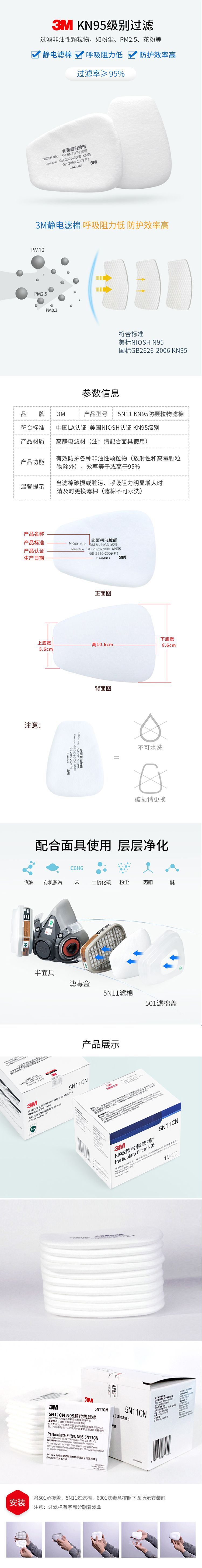 3M 5N11CN 预过滤棉 喷漆防尘防颗粒物过滤棉 防毒面具配件