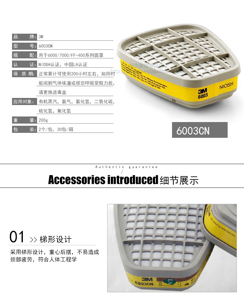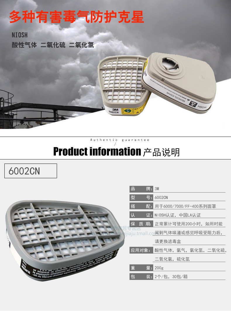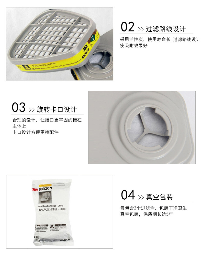 3M 6002CN 滤毒盒防酸性气体二氧化硫化氯防毒面具滤毒盒