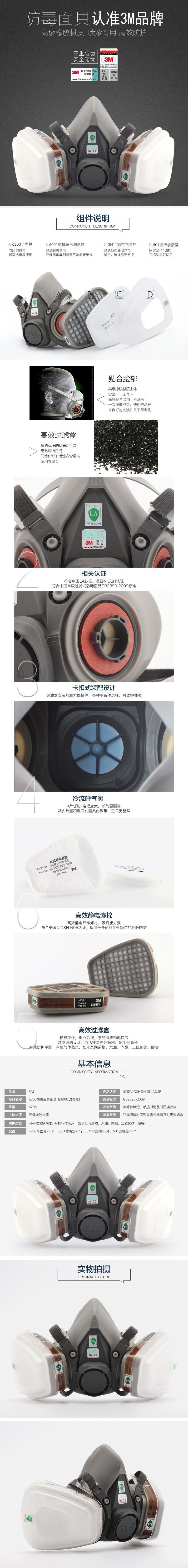3M 6200 喷漆防有机气体防异味防化工气体工业粉尘防毒面具