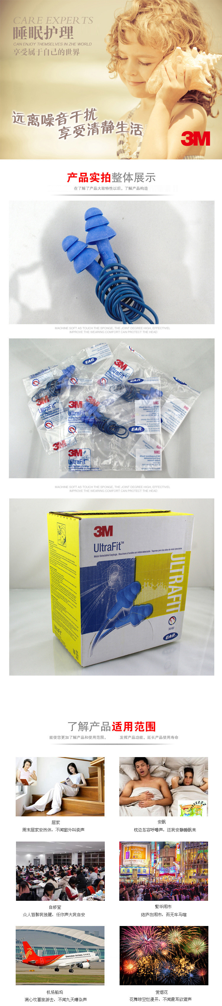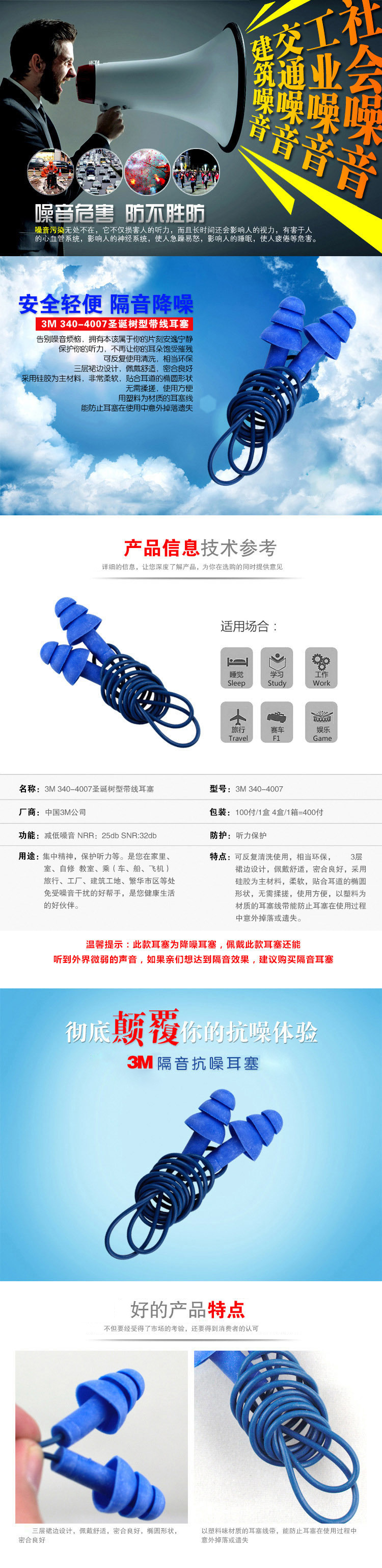 产品名称:3M EAR340-4007 圣诞树型可清洗隔音降噪带线睡觉睡眠隔音耳塞