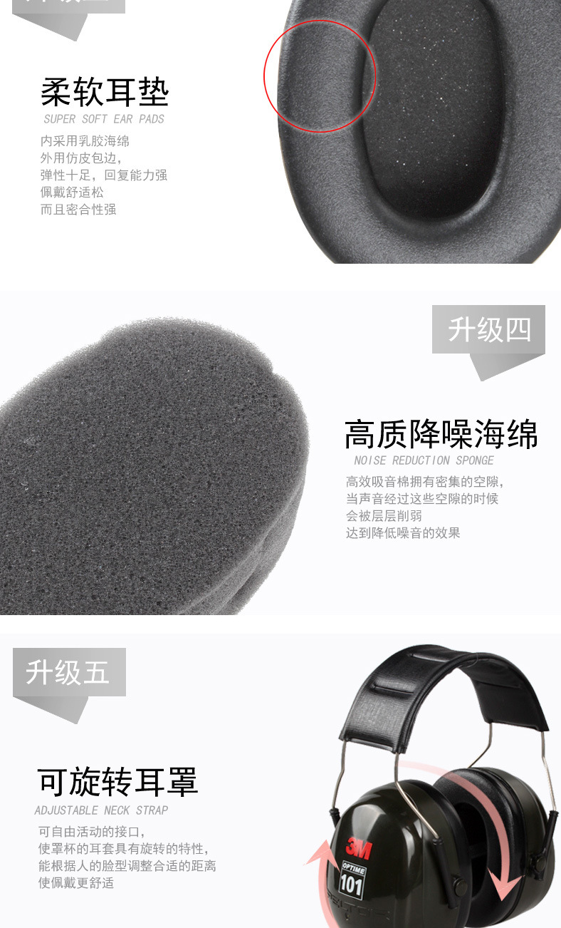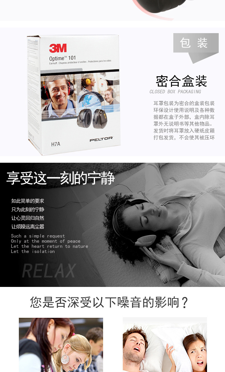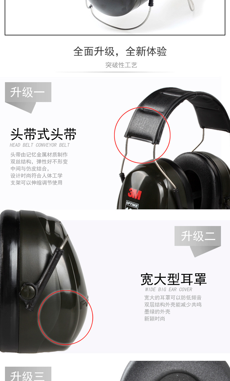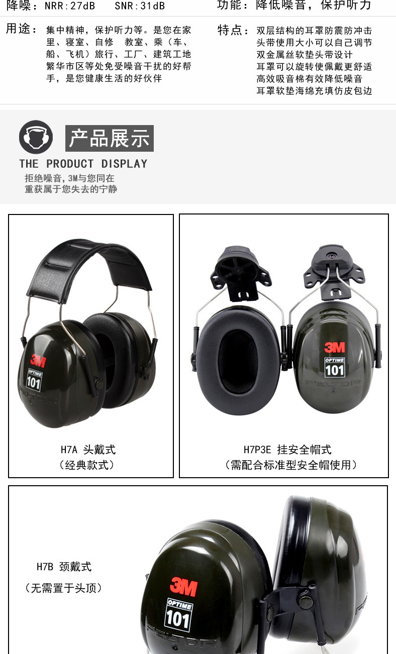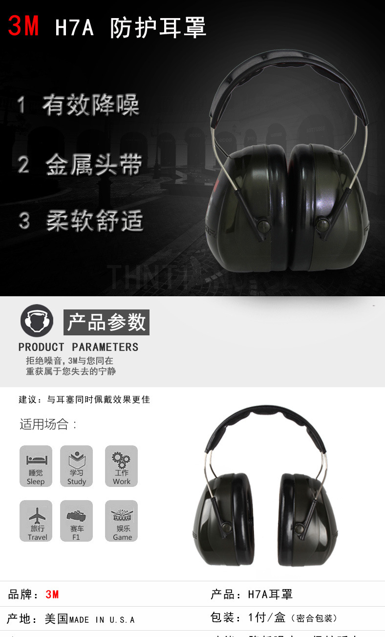 3M PELTOR H7A 头戴式隔音降噪防噪音阻燃防水学习睡眠防护耳罩