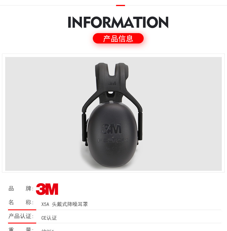 3M X5A 隔音降噪防噪音舒适学习降噪头戴式防护耳罩