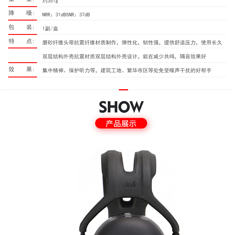 3M 1436 折叠式经济型隔音降噪音工作学习头戴式防护耳罩