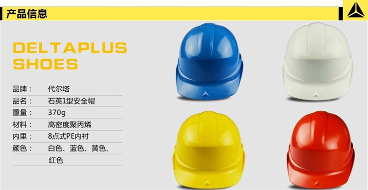 产品名称:代尔塔 102011 经济款钻石1型 绝缘防砸防撕裂抗冲击工地安全帽