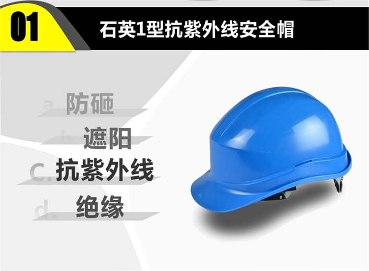 防紫外线高密度聚乙烯安全帽,低密度PE材质8点式内衬,插口式后箍调节。带排汗带。