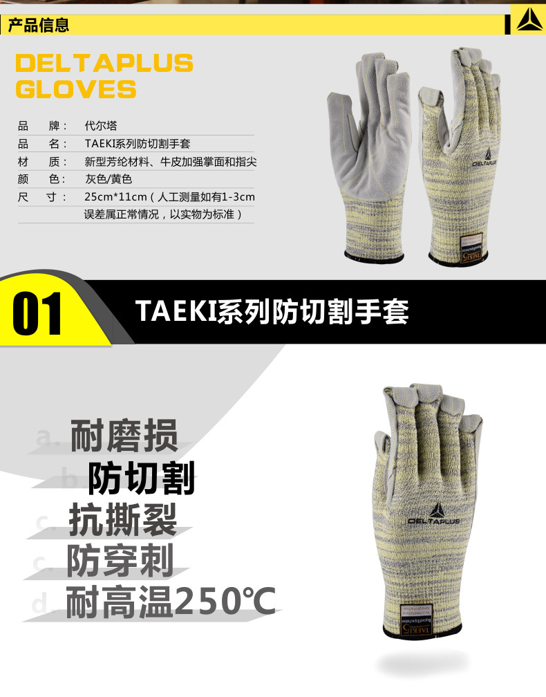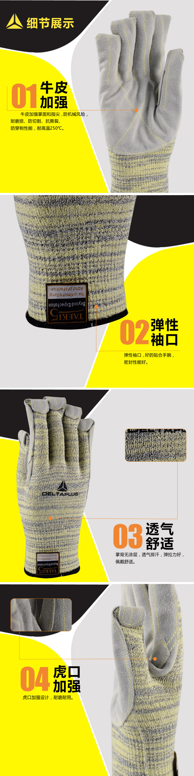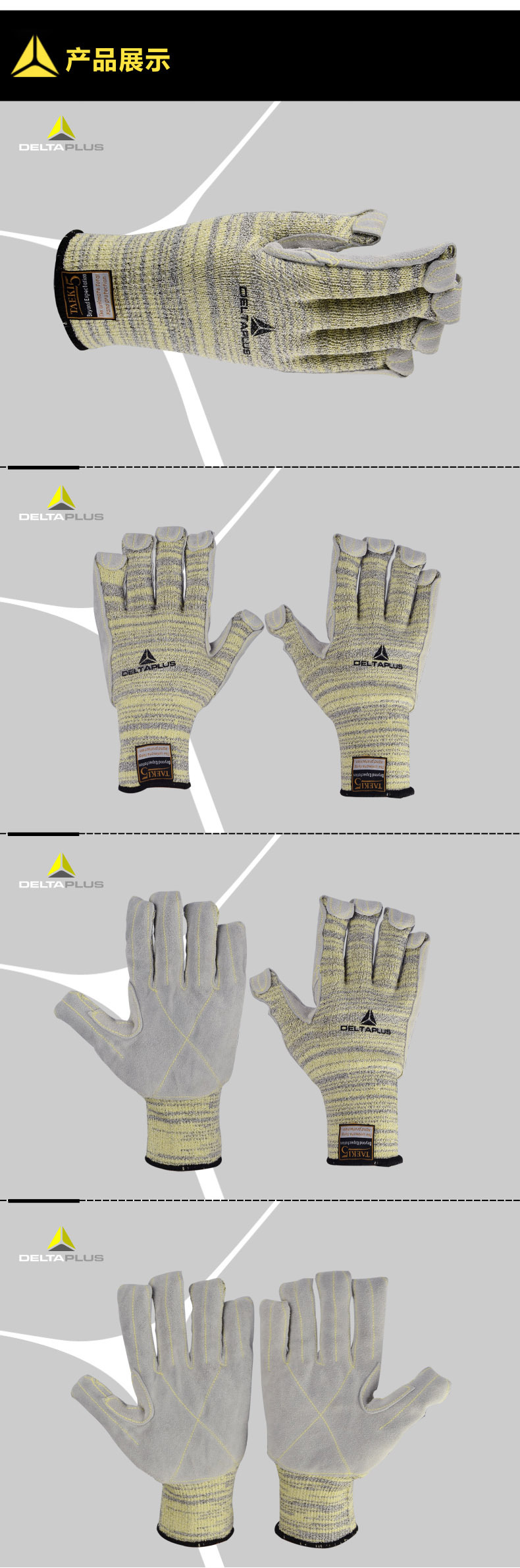 产品名称:代尔塔 202012 防切割手套耐磨耐高温防穿刺牛皮防护手套