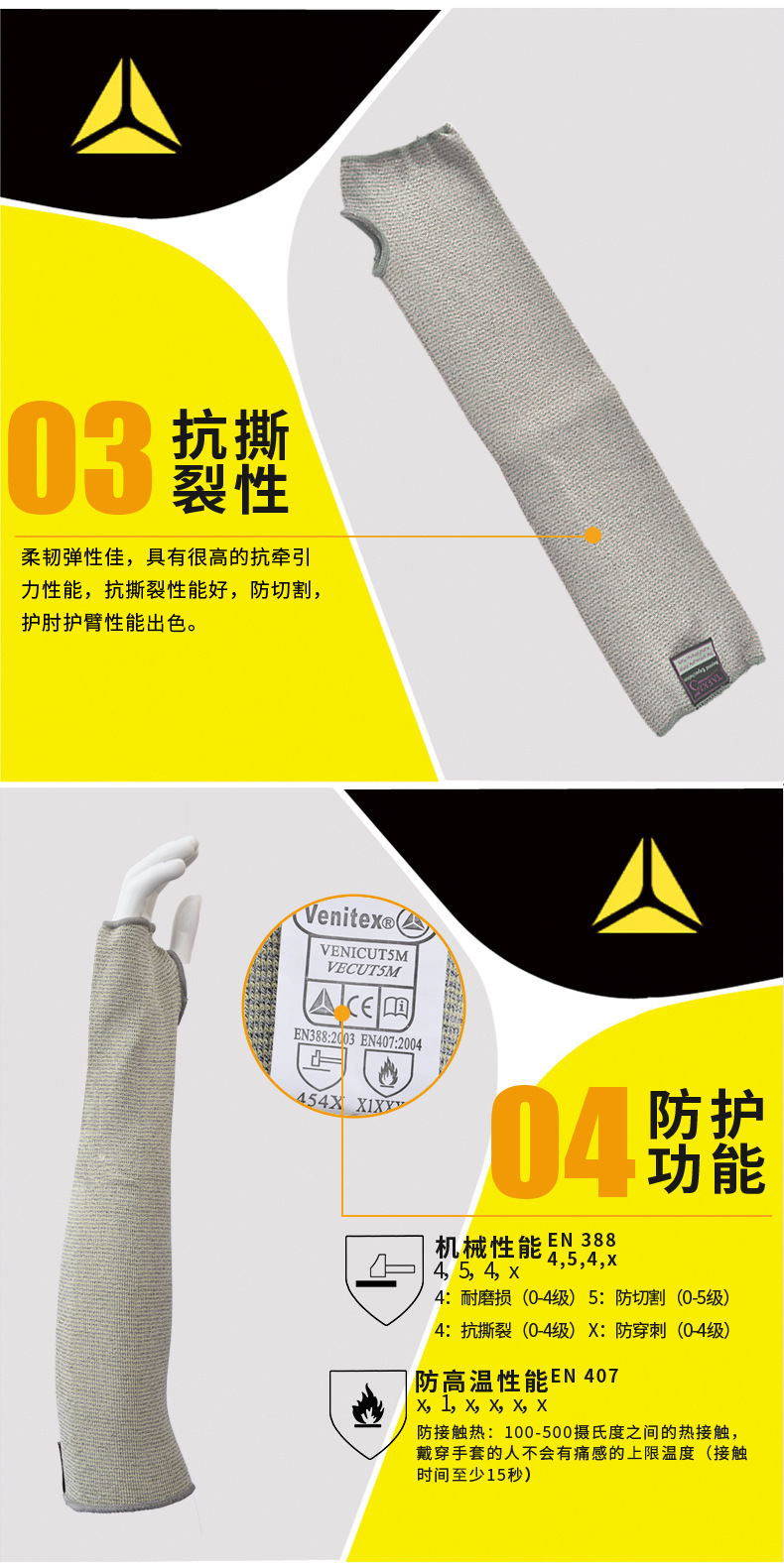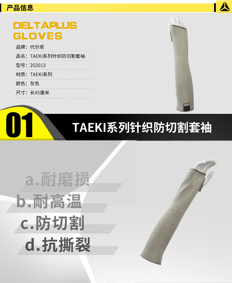 产品名称:代尔塔 202013 防割隔热耐高温耐磨舒适透气针织防护袖套